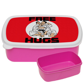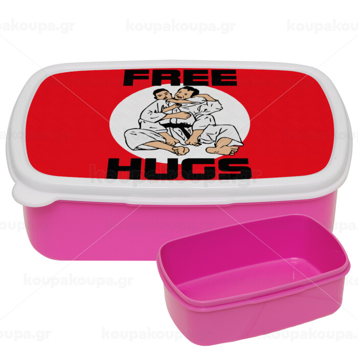 JUDO free hugs, ΡΟΖ παιδικό δοχείο φαγητού (lunchbox) πλαστικό (BPA-FREE) Lunch Βox M18 x Π13 x Υ6cm