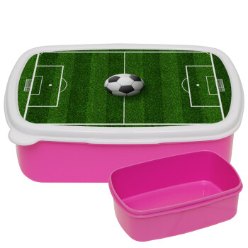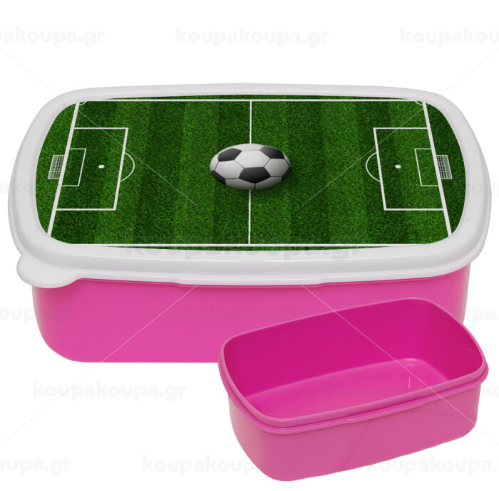 Soccer field, Γήπεδο ποδοσφαίρου, ΡΟΖ παιδικό δοχείο φαγητού (lunchbox) πλαστικό (BPA-FREE) Lunch Βox M18 x Π13 x Υ6cm