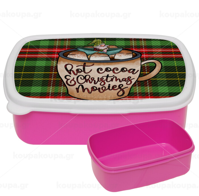 Hot Cocoa And Christmas Movies, ΡΟΖ παιδικό δοχείο φαγητού (lunchbox) πλαστικό (BPA-FREE) Lunch Βox M18 x Π13 x Υ6cm