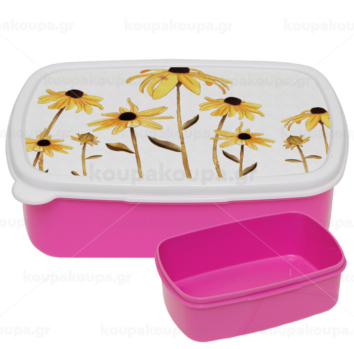Daisies flower, ΡΟΖ παιδικό δοχείο φαγητού (lunchbox) πλαστικό (BPA-FREE) Lunch Βox M18 x Π13 x Υ6cm