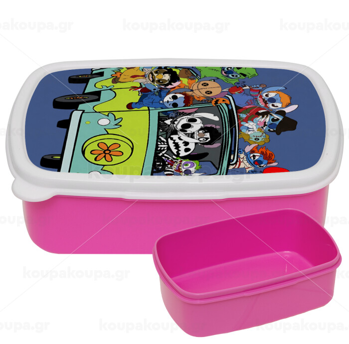 Stitch Halloween scooby car, ΡΟΖ παιδικό δοχείο φαγητού (lunchbox) πλαστικό (BPA-FREE) Lunch Βox M18 x Π13 x Υ6cm