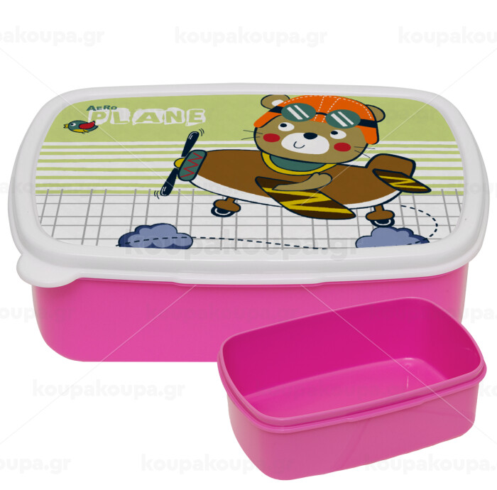 Kids Plane, ΡΟΖ παιδικό δοχείο φαγητού (lunchbox) πλαστικό (BPA-FREE) Lunch Βox M18 x Π13 x Υ6cm