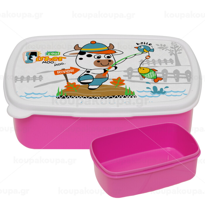 Kids Fisherman, ΡΟΖ παιδικό δοχείο φαγητού (lunchbox) πλαστικό (BPA-FREE) Lunch Βox M18 x Π13 x Υ6cm