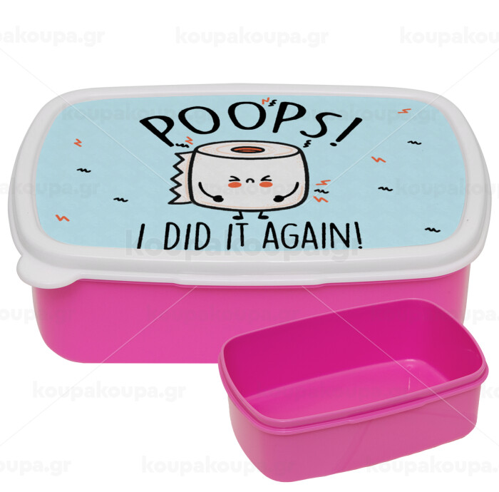 Poops!...I Did It Again, ΡΟΖ παιδικό δοχείο φαγητού (lunchbox) πλαστικό (BPA-FREE) Lunch Βox M18 x Π13 x Υ6cm