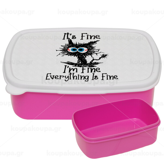 Cat, It's Fine I'm Fine Everything Is Fine, ΡΟΖ παιδικό δοχείο φαγητού (lunchbox) πλαστικό (BPA-FREE) Lunch Βox M18 x Π13 x Υ6cm