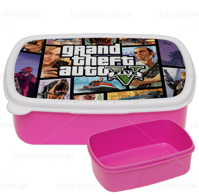 GTA V, ΡΟΖ παιδικό δοχείο φαγητού (lunchbox) πλαστικό (BPA-FREE) Lunch Βox M18 x Π13 x Υ6cm