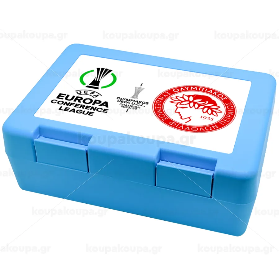 Olympiacos UEFA Europa Conference League Champion 2023/24, Children's cookie container LIGHT BLUE 185x128x65mm (BPA free plastic)
