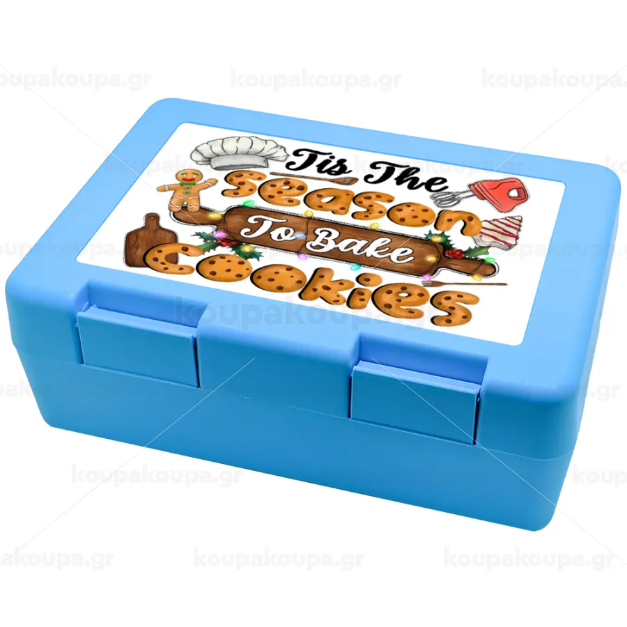 Tis The Season To Bake Cookies, Children's cookie container LIGHT BLUE 185x128x65mm (BPA free plastic)