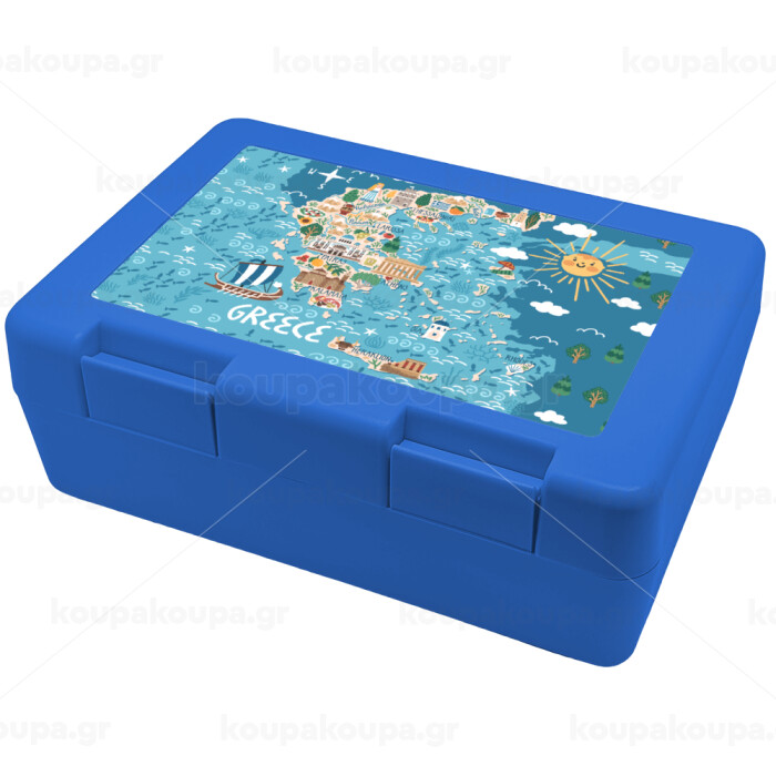Greek map, Children's cookie container BLUE 185x128x65mm (BPA free plastic)