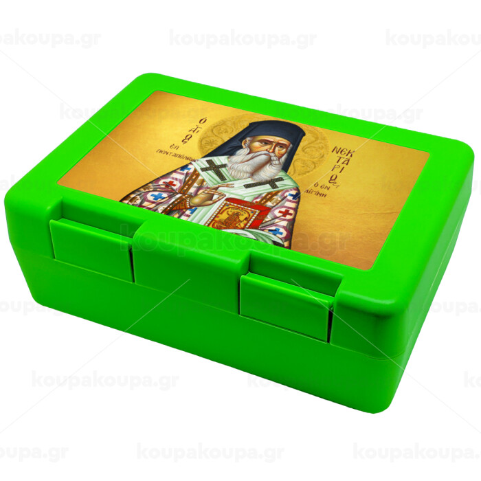 Saint Nektarios, Children's cookie container GREEN 185x128x65mm (BPA free plastic)