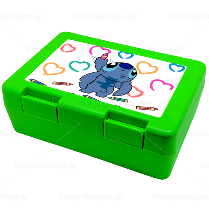 Lilo & Stitch painting, Children's cookie container GREEN 185x128x65mm (BPA free plastic)