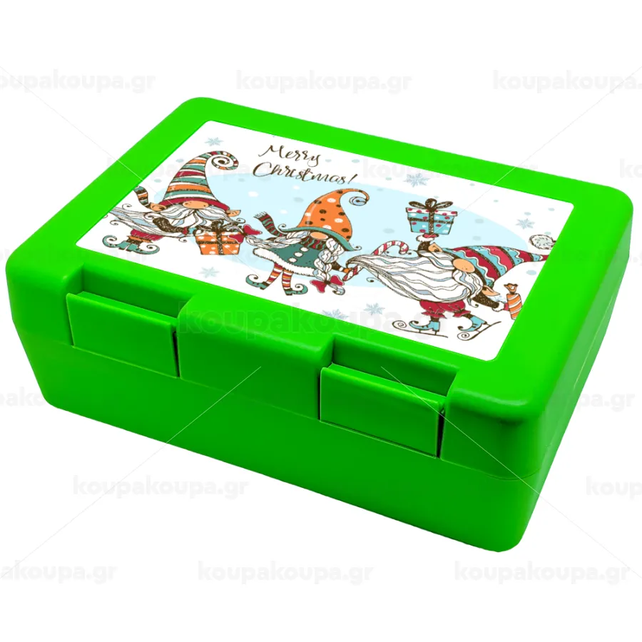 Christmas nordic gnomes, Children's cookie container GREEN 185x128x65mm (BPA free plastic)