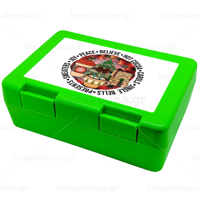Joy, Peace, Believe, Hot Cocoa, Carols, Children's cookie container GREEN 185x128x65mm (BPA free plastic)