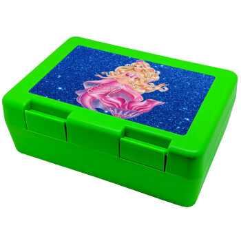Barbie mermaid blue, Children's cookie container GREEN 185x128x65mm (BPA free plastic)
