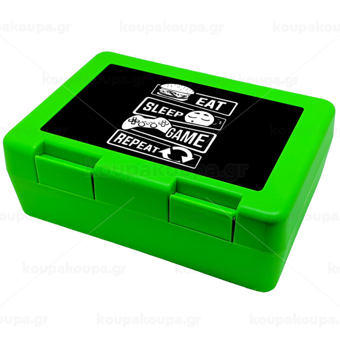 Eat Sleep Game Repeat, Children's cookie container GREEN 185x128x65mm (BPA free plastic)