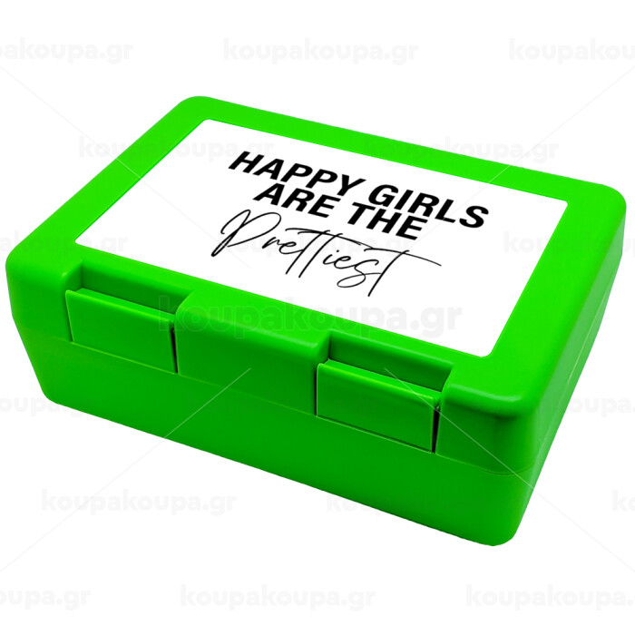 Happy girls are the prettiest, Children's cookie container GREEN 185x128x65mm (BPA free plastic)