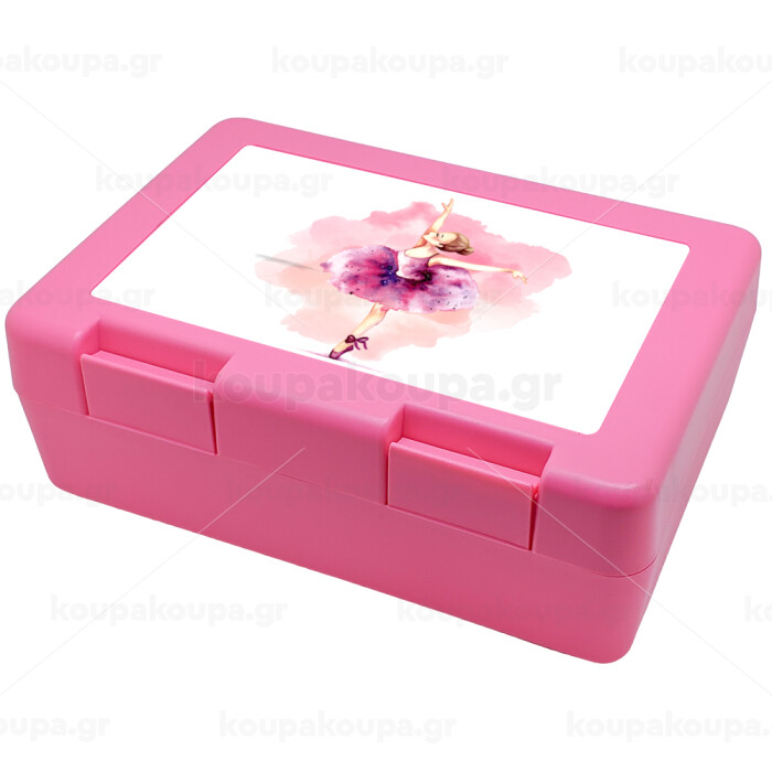 Ballerina watercolor, Children's cookie container PINK 185x128x65mm (BPA free plastic)