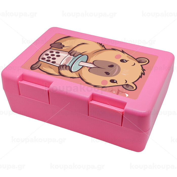 Capybara Bubble Tea, Children's cookie container PINK 185x128x65mm (BPA free plastic)