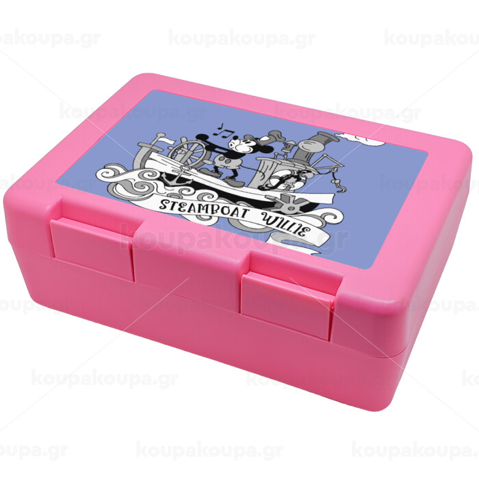 Mickey steamboat, Children's cookie container PINK 185x128x65mm (BPA free plastic)