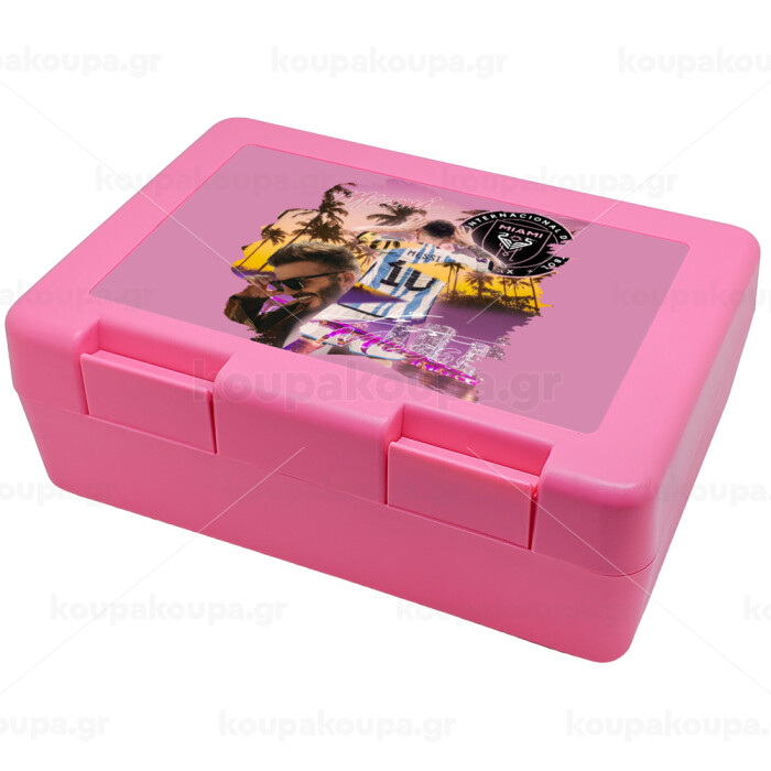 Lionel Messi Miami, Children's cookie container PINK 185x128x65mm (BPA free plastic)