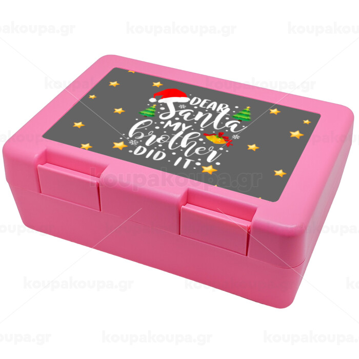 Dear santa my Brother did it, Children's cookie container PINK 185x128x65mm (BPA free plastic)