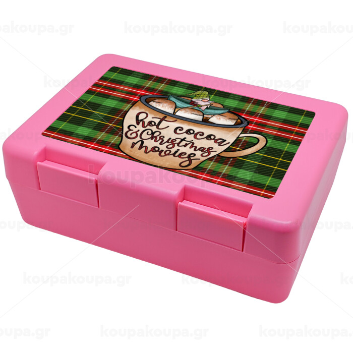 Hot Cocoa And Christmas Movies, Children's cookie container PINK 185x128x65mm (BPA free plastic)