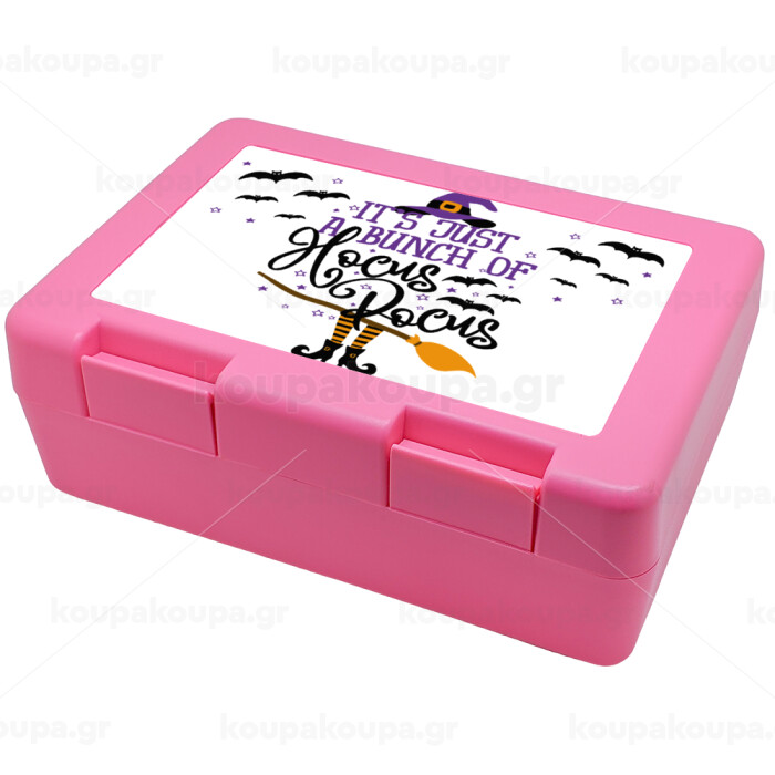 It's just a bunch of hocus pocus - halloween, Children's cookie container PINK 185x128x65mm (BPA free plastic)