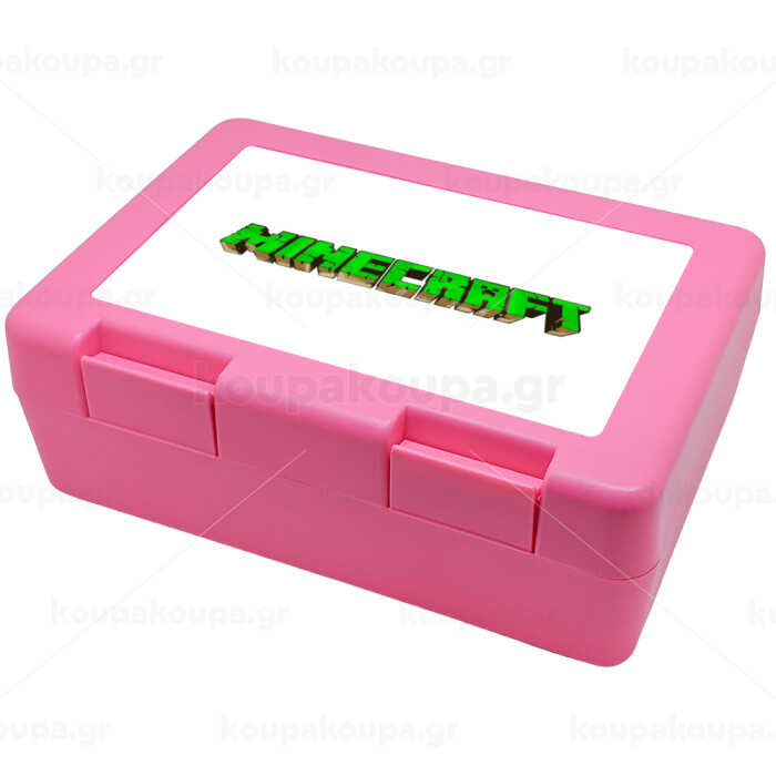 Minecraft logo green, Children's cookie container PINK 185x128x65mm (BPA free plastic)