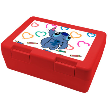 Lilo & Stitch painting, Children's cookie container RED 185x128x65mm (BPA free plastic)