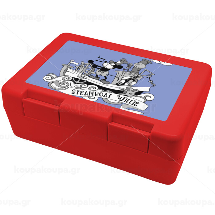 Mickey steamboat, Children's cookie container RED 185x128x65mm (BPA free plastic)
