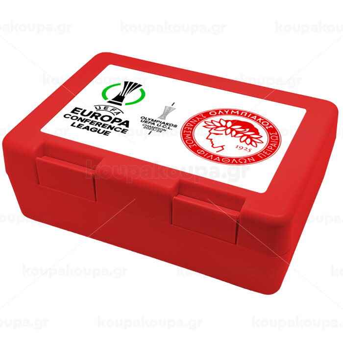 Olympiacos UEFA Europa Conference League Champion 2023/24, Children's cookie container RED 185x128x65mm (BPA free plastic)