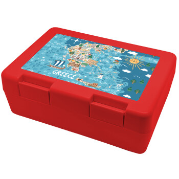 Greek map, Children's cookie container RED 185x128x65mm (BPA free plastic)