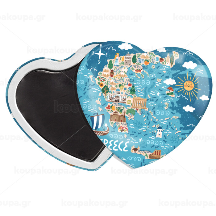Greek map, Μαγνητάκι καρδιά (57x52mm)