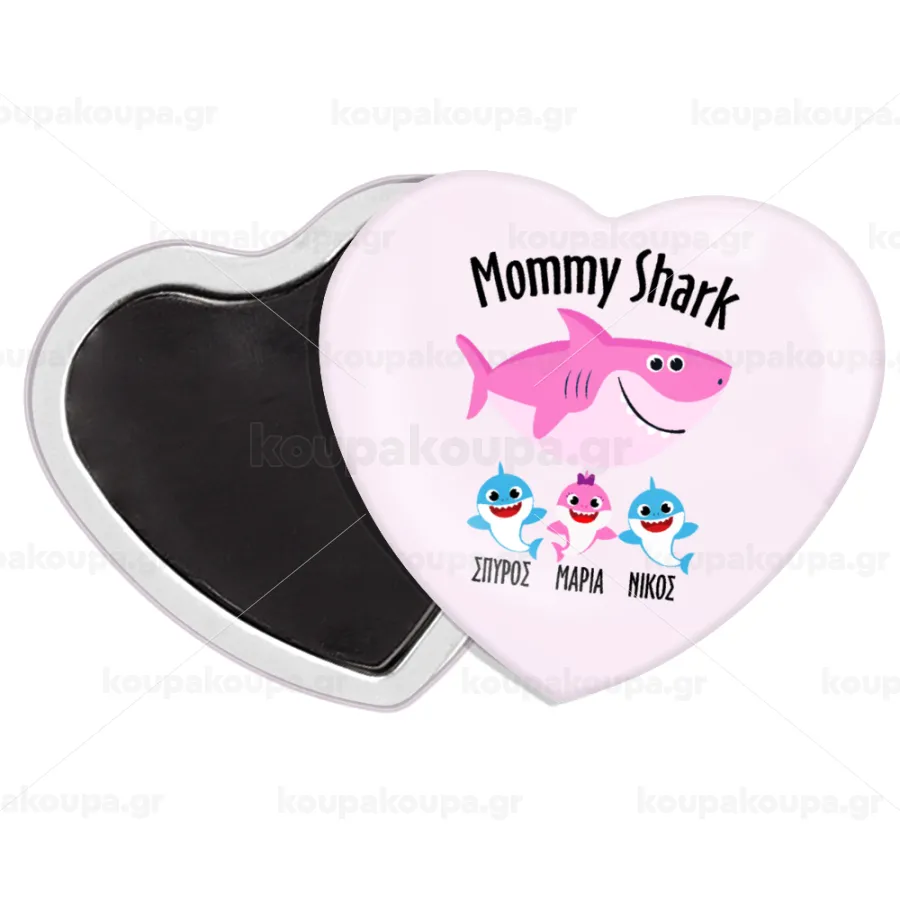 Mommy Shark (με ονόματα παιδικά), Μαγνητάκι καρδιά (57x52mm)