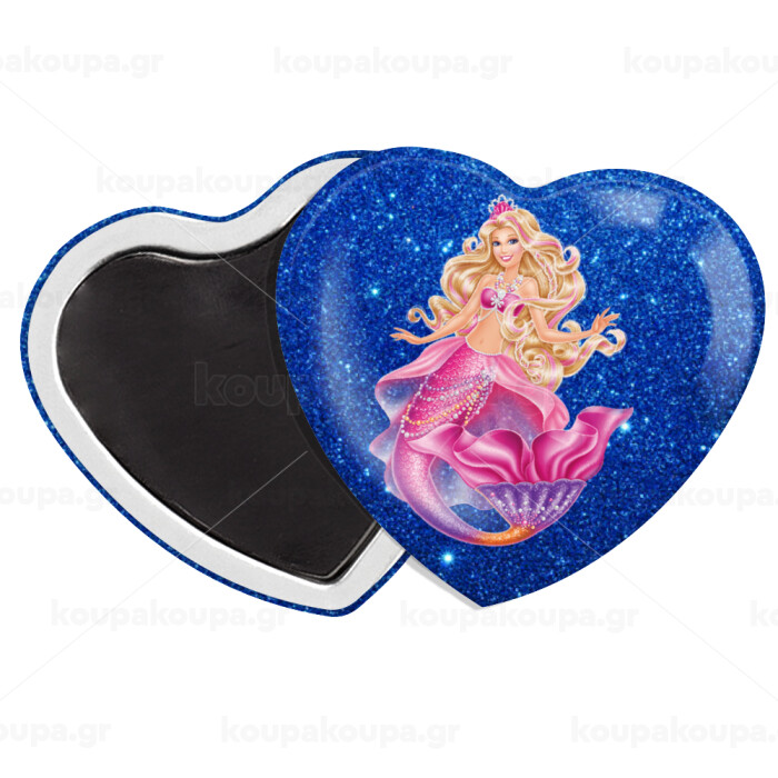 Barbie mermaid blue, Μαγνητάκι καρδιά (57x52mm)