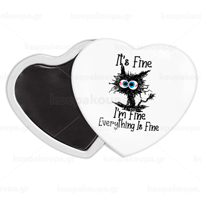 Cat, It's Fine I'm Fine Everything Is Fine, Μαγνητάκι καρδιά (57x52mm)