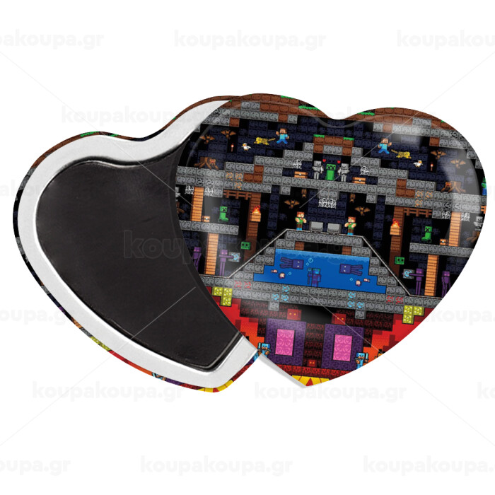 Minecraft 2D map, Μαγνητάκι καρδιά (57x52mm)