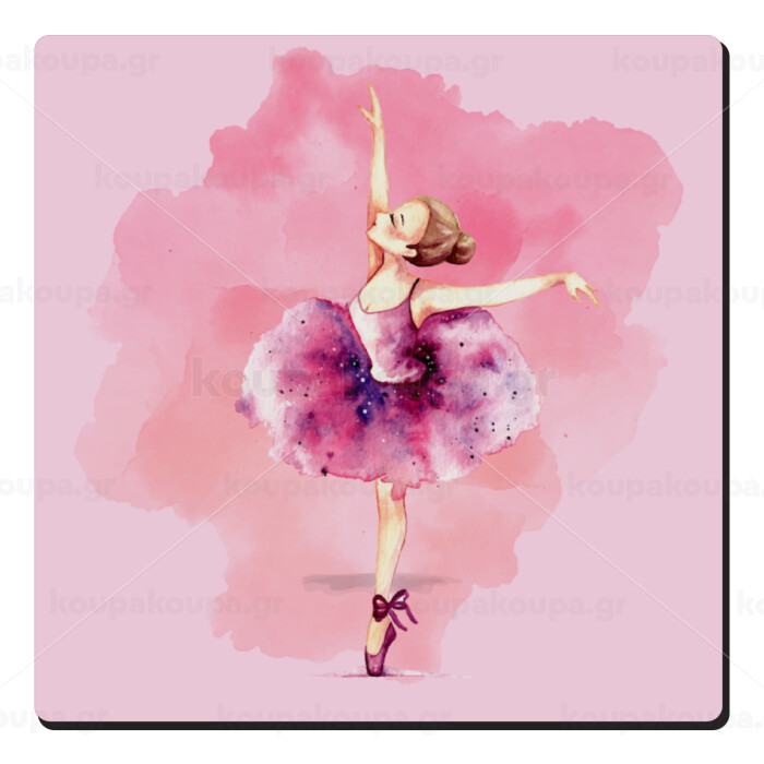 Ballerina watercolor, Τετράγωνο μαγνητάκι ξύλινο 6x6cm