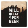 Will Belay For Beer, Τετράγωνο μαγνητάκι ξύλινο 6x6cm