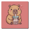 Capybara Bubble Tea, Τετράγωνο μαγνητάκι ξύλινο 6x6cm
