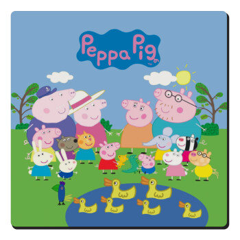 Peppa pig Family, Τετράγωνο μαγνητάκι ξύλινο 6x6cm