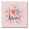 I Love you Mom pink, Τετράγωνο μαγνητάκι ξύλινο 6x6cm