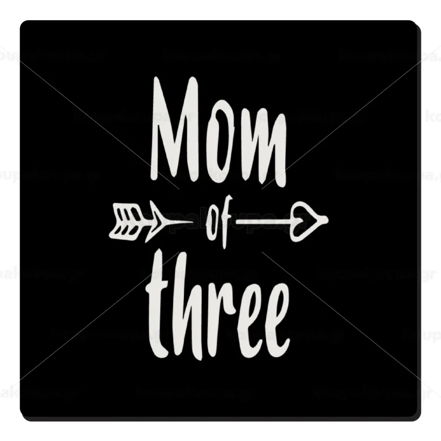 Mom of three, Τετράγωνο μαγνητάκι ξύλινο 6x6cm