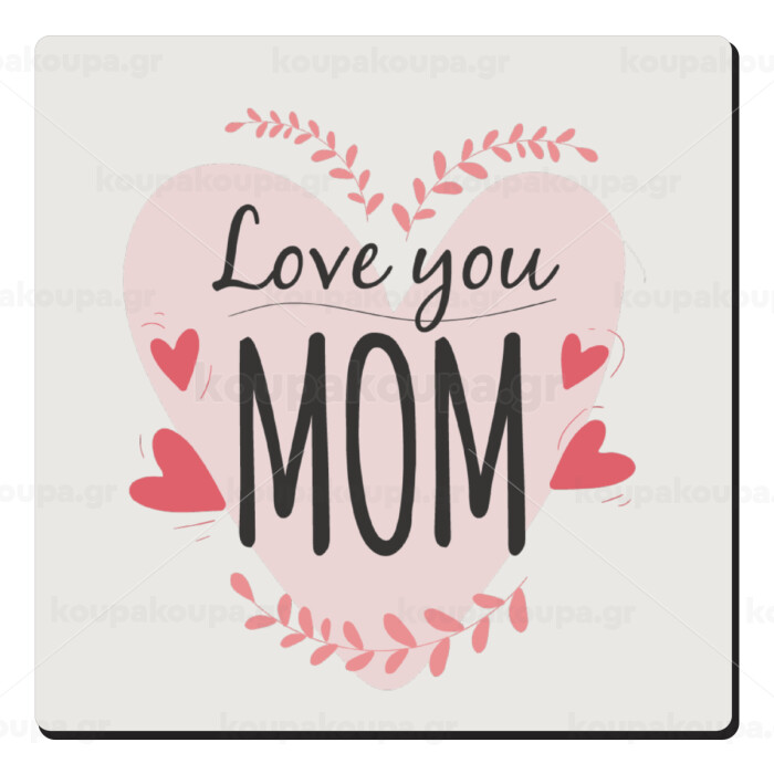 Mother's day I Love you Mom heart, Τετράγωνο μαγνητάκι ξύλινο 6x6cm
