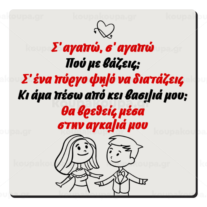 Σ΄ αγαπώ σ΄ αγαπώ που με βάζεις, Τετράγωνο μαγνητάκι ξύλινο 6x6cm