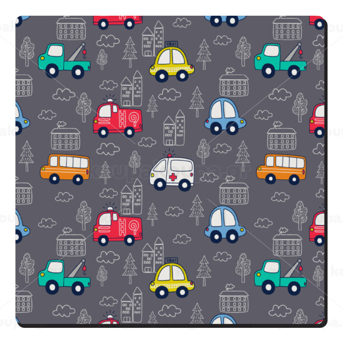 Hand drawn childish set with cars, Τετράγωνο μαγνητάκι ξύλινο 6x6cm