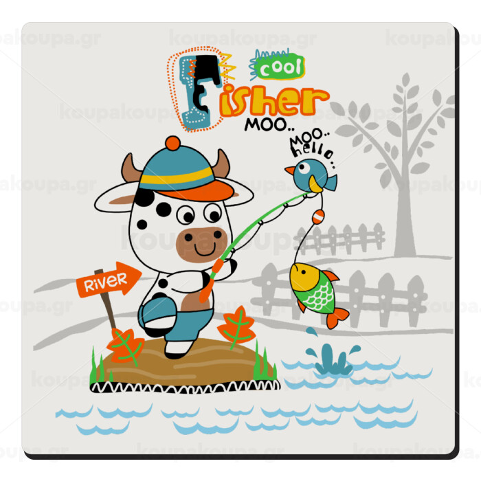 Kids Fisherman, Τετράγωνο μαγνητάκι ξύλινο 6x6cm