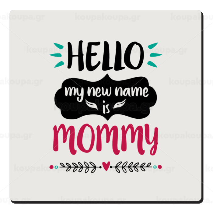 Hello, my new name is Mommy, Τετράγωνο μαγνητάκι ξύλινο 6x6cm