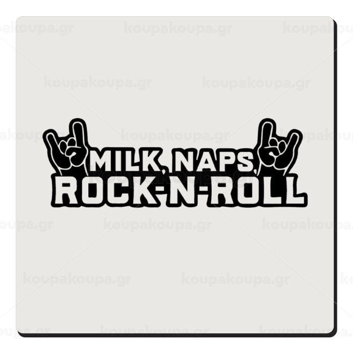 Milk, Naps, Rock N Roll, Τετράγωνο μαγνητάκι ξύλινο 6x6cm