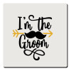 I'm the groom mustache, Τετράγωνο μαγνητάκι ξύλινο 6x6cm